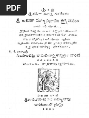 Lalitha Sahasranamam Addeddate 2018-01-23 023844 Identifier. Web Download PDF of Telugu Lalitha Sahasranamam లలత సహసరనమ సతతర With Lyrics. Read download PDF book from Greater Telugu.