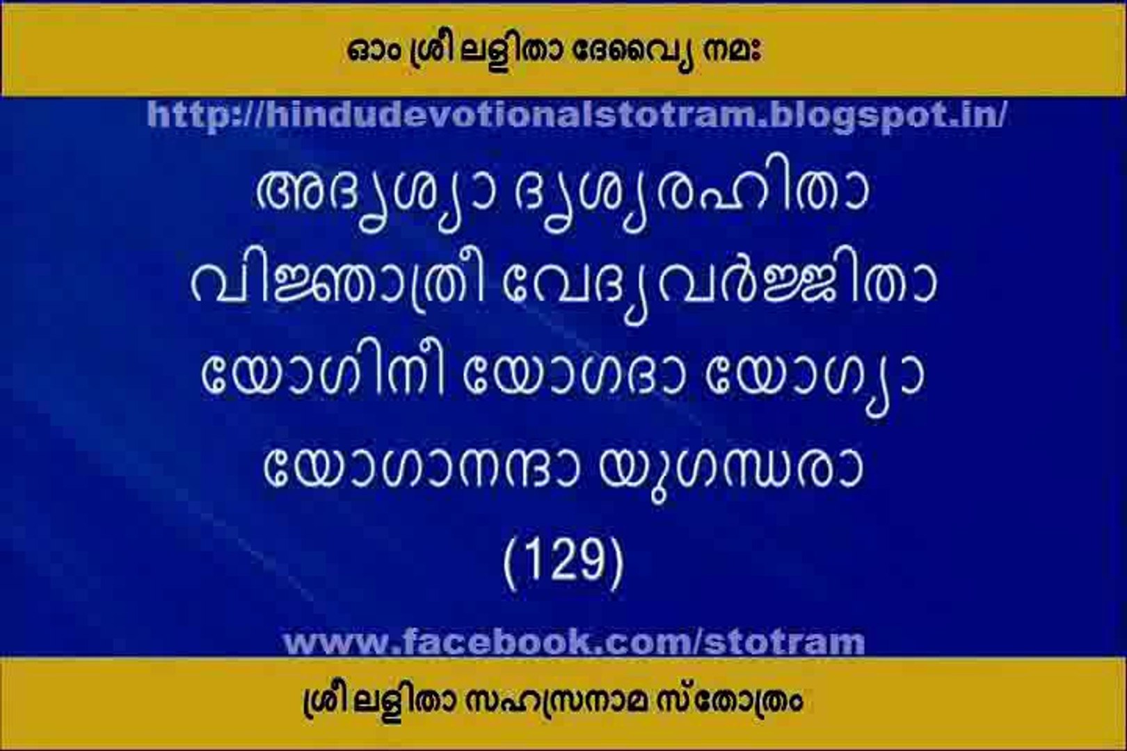 Lalitha Sahasranama Stotram Malayalam Lyrics